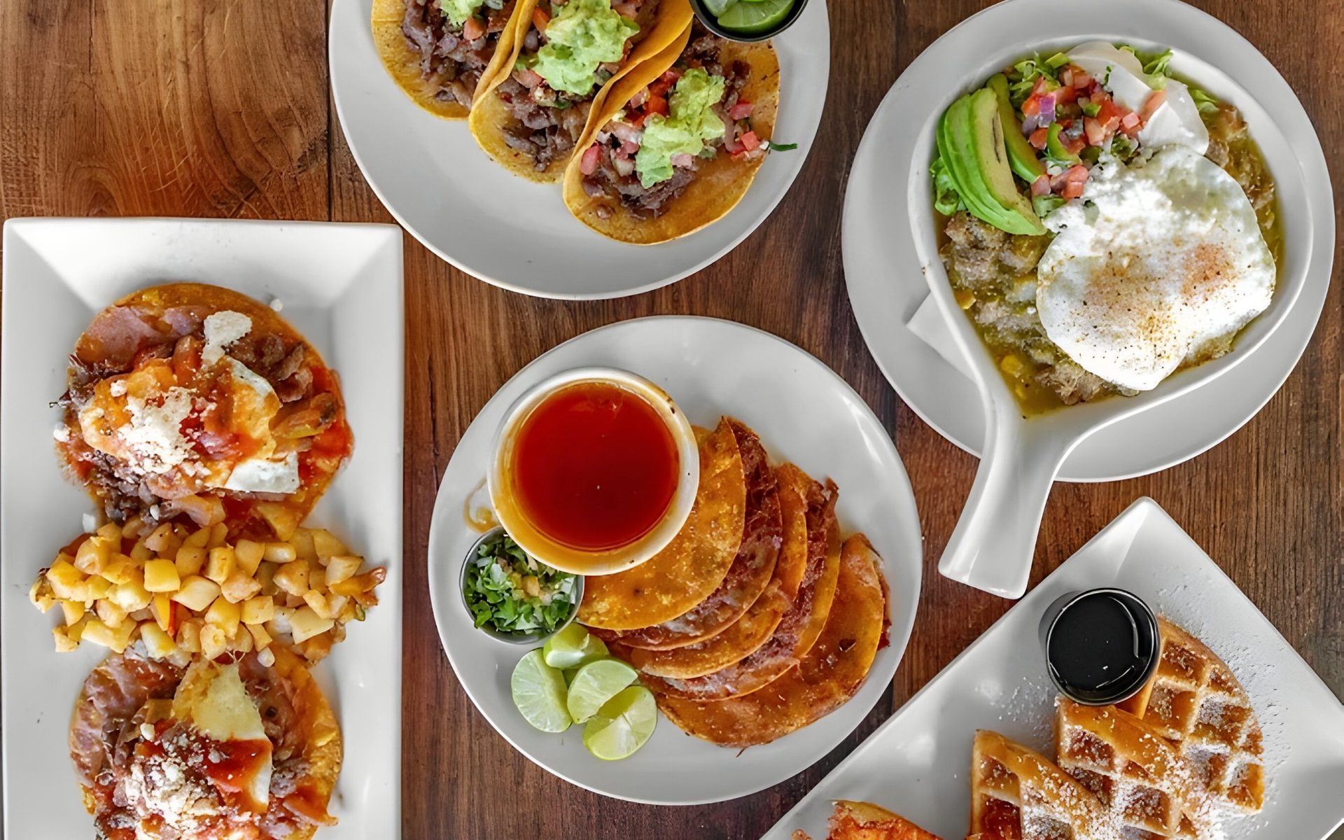 We are known for Carne Asada, Eggs, Shrimp Cocktail, Burgers, Tostadas, Breakfast Quesadilla, Huevos Rancheros, Breakfast Burrito, Burritos, Enchiladas, Croque Madame, Omelette, Yogurt Parfait, Blueberry Pancakes, Tortas, Bar Food, Grilled Chicken, Carnitas, Quesadillas, Pancakes, Tacos, Quesadilla, Coffee, Menudo, Churros, Fries, Seafood, Breakfast Ramen, Taco, Steak and Eggs, Street Tacos, Pollo Asado, Enchilada, Ceviche, Ceviche Tostada, Sausage, Avocado Toast, Waffles, Guacamole, Torta, Birria, French Toast, Chilaquiles, Chilaquiles Burrito, Tres Leches Cake, French Fries, Breakfast Burger, Breakfast, Hot Chicken, Birria Sandwich, and Shrimp